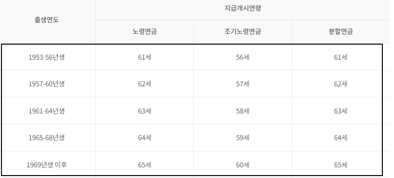 - 1953~56년생 국민연금 수령나이는 61세입니다.