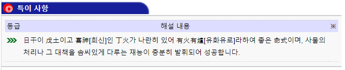 그럼 바로 하단에 사주명식표가 나타나고, 여러 가지 사주풀이 내용을 볼 수 있습니다. 사주풀이 도우미 사이트에서 우측 상단에 있는 커뮤니티를 클릭하면 무료로 이용할 수 있는 토정비결 메뉴 서비스를 선택할 수 있습니다.