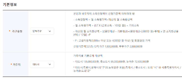 여기서 소득인정액 선정기준액은 월소득 평가액과 재산의 월 소득 환산액을 합산해 산정합니다.