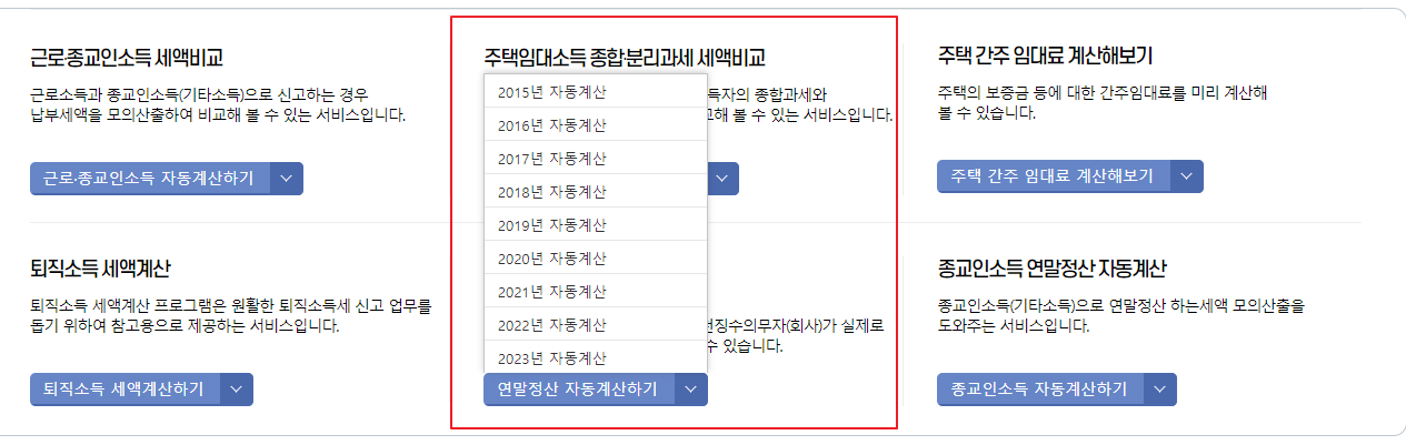 그전에 나의 연말정산 환급금을 모의계산하고 싶다면 혹은 이전에 환급받았던 내용을 확인하고 싶다면 2015년부터 2023년까지 확인해 볼 수 있으니 이용해 보셔도 좋습니다.