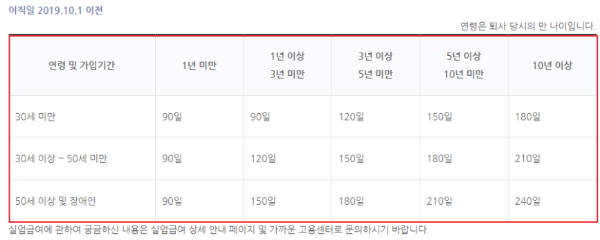 실업급여 수급기간은 이직일, 근무기간에 따라 차이가 있습니다. 오래 근무하고 나이가 많을수록 실업급여 수급기간이 길어집니다.