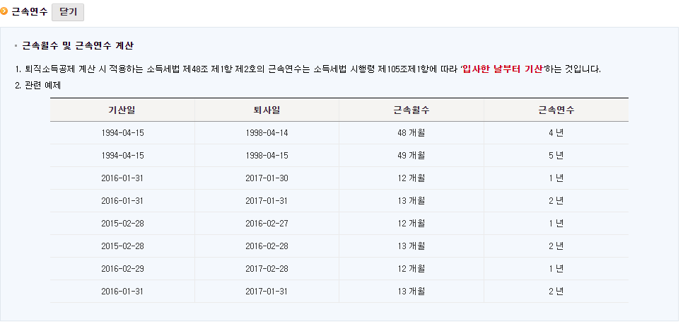 퇴직소득세 자동계산기는 연도별로 과세표준 금액이 다르기 때문에 연도 별 퇴직소득세 계산 기준을 선택합니다.