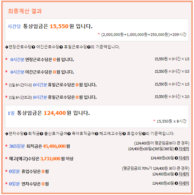 통상임금 계산방법이 각자 다르기 때문에 통상임금 계산기를 이용하면 통상임금 계산방법을 알지 못해도 간단하게 자동으로 계산이 됩니다. 공식이 다소 복잡할 수 있으니 통상임금 계산기를 이용해서 계산해 보시기 바랍니다.