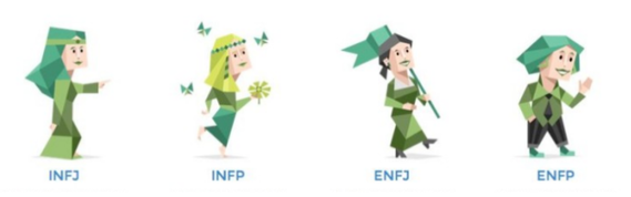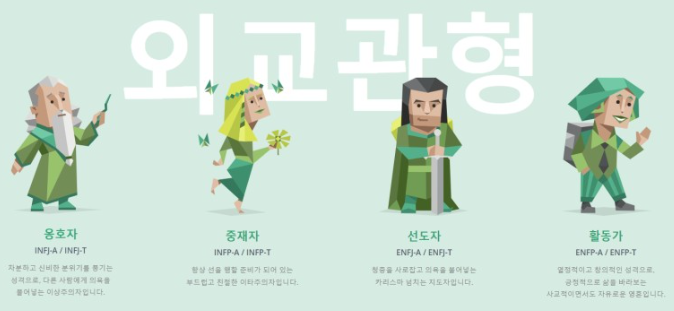 각 알파벳을 나열하고 표시하는데요. 예를 들어 외향-직관-감정-인식의 특징을 가졌다면 ENFP가 됩니다.