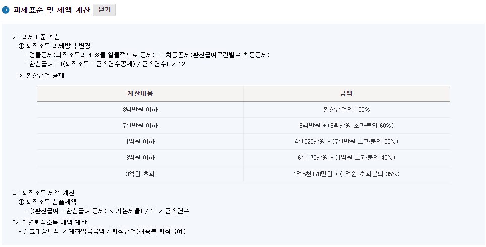 다만 이 퇴직금 세금을 계산하는 방법은 매우 어렵고 복잡합니다. 퇴직금 세금 계산하기 위해서는 상당한 공식과 계산이 요합니다.