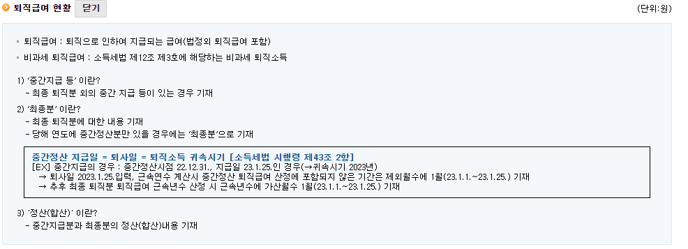 퇴직금 세금 계산은 위에서 언급했듯이 매우 복잡한 공식과 계산이 필요합니다. 그래서 국세청 홈택스에서 퇴직금 세금을 계산해 볼 수 있는 자동 계산기를 제공하고 있습니다.
