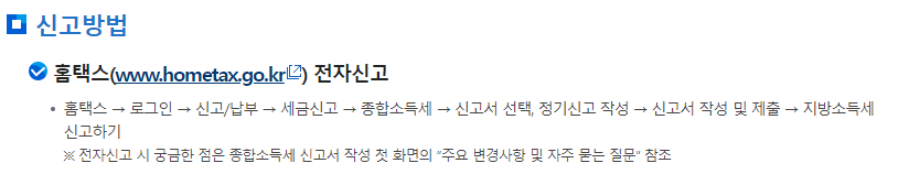 종합소득세 신고는 국세청 홈페이지를 통해 전자신고서를 작성해서 신고할 수 있으며 세무 전문가를 통해서도 신고할 수 있습니다.