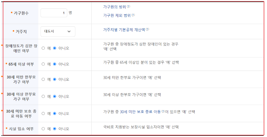 기초생활수급자 자격요건
