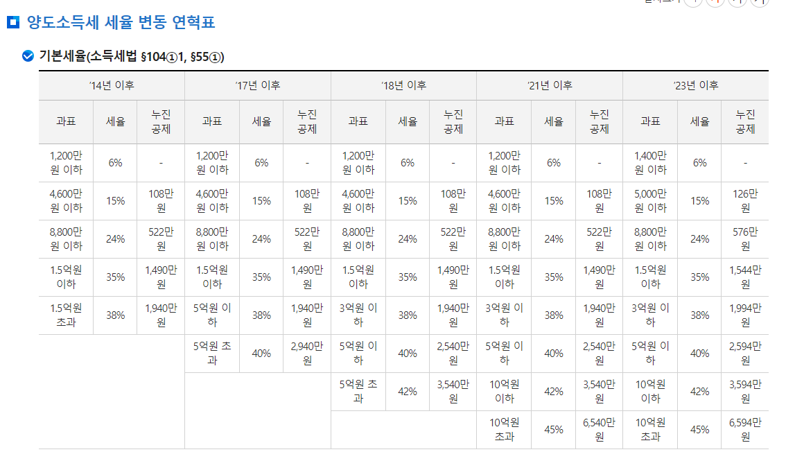 1 가구 2 주택 양도소득세 세율