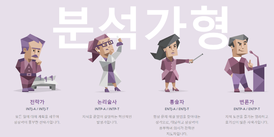 INTP - MBTI 성격 유형중 가장 지능이 높은 유형으로 호불호가 강하며 분석하고 문제를 해결하는 것을 좋아하는 논리적인 사색가입니다.