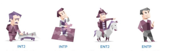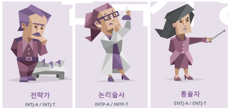 ENTJ - 분석적이고 객관적이며 자기주장이 강한 편으로 대담합니다. 상상력도 풍부하고 의지가 강한 편으로 리더를 맡는 경우가 많습니다.