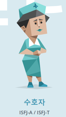 ISFJ - 자신의 감정을 표현하지는 않지만 한번 인연을 맺으면 가장 믿음직스럽고 의리가 있습니다. 차분하고 책임감이 강하며 주의사람들에게 친절하게 대합니다.