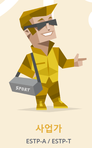 ESTP - 센스 있고 유머러스하기 때문에 사람들과 어울리는 것을 즐겨하고 현실적이고 경험을 중요시합니다. 문제를 해결하는데 창의적인 방법을 사용합니다.