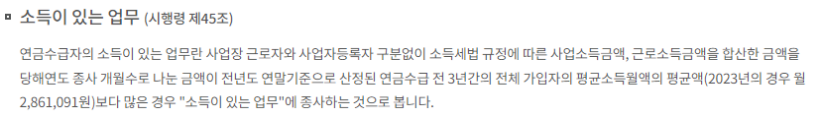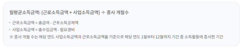 만약 월평균 소득금액이 국민연금 전체 가입자의 평균 소득월액을 초과한다면, 국민연금 감액이 발생합니다. 이는 소득이 있는 업무에서 발생하는 사업소득금액과 근로소득을 합산한 금액을 소득이 발생한 해의 근무 월수로 나누어 계산합니다.