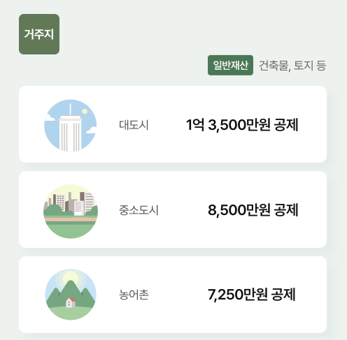 노령연금 재산기준으로는 기본재산액은 대도시 1억 3천5백만 원, 중소도시 8천5백만 원, 농어촌 7천2백5십만 원이며 금융재산은 가구당 2천만 원입니다.