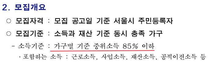 1월 9일 기준으로 주민등록상 서울시에 거주하고, 가구소득이 가구별 기준 중위소득 85% 이하이면서 재산이 3억 2600만 원 이하인 가구가 신청대상입니다.