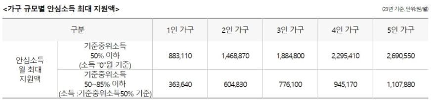 예를 들어 소득이 0원인 1인 가구의 경우 기준 중위소득 85% (176만 6000원) 대비 가구소득 부족분의 절반인 88만 3000원을 지원받습니다.