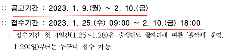 온라인 접수가 어려운 분들을 위해서 모집기간 마지막 5일 2월 6일 ~ 10일 콜센터를 통해서 신청할 수 있습니다.