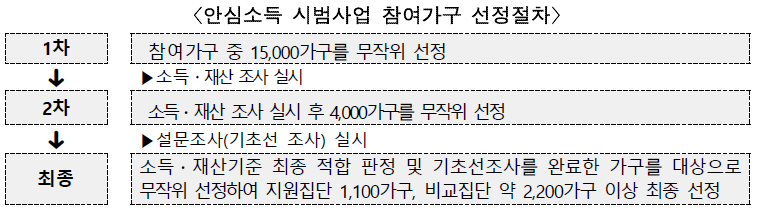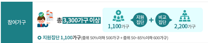 최종 선정된 1100가구는 중위소득 85% 기준액과 가구소득 간 차액의 절반을 매월 2년간 지원받습니다.