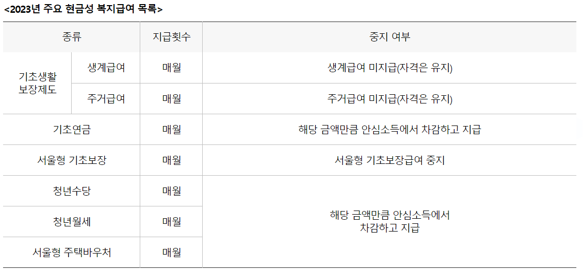 다만 생계급여, 주거급여 , 기초연금등 복지급여를 받고 있다면 중복해서 지원받을 수 없습니다. 기초생활수급자의 경우 종전에 지원받던 생계, 주거급여가 중지됩니다.