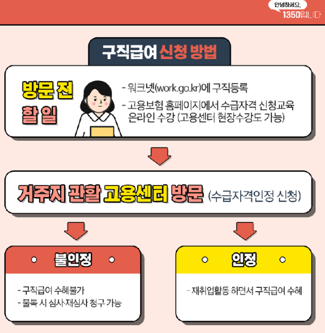 실업급여 신청방법으로는 워크넷에 구직등록을 신청합니다. 수급자격을 신청 전에 거주지 관할 고용센터 방문하여 수급자격 신청교육을 필수로 이수해야 합니다.