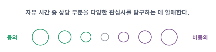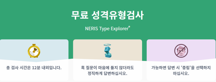 엠비티아이 무료 검사의 경우 질문의 너무 깊게 생각하지 말고 바로 떠오르는 답변을 선택하는 게 정확도가 높습니다.