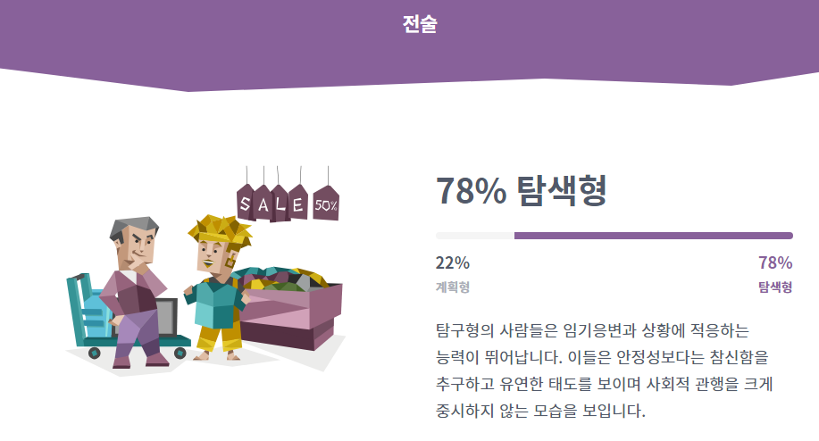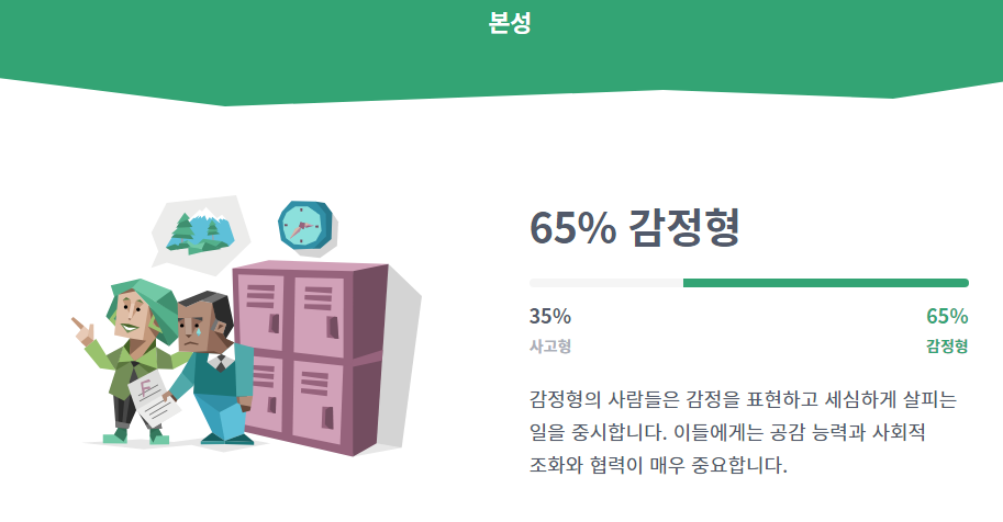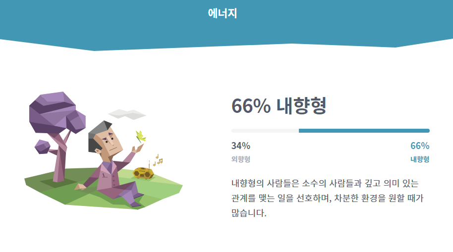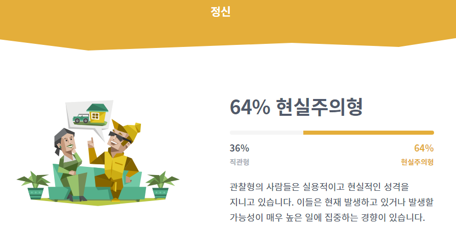 제가 엠비티아이 무료 검사를 다시 해보니 큰 틀은 비슷하지만 질문이 조금 정리가 되면서 전보다 정확도가 높아진 것 같습니다.