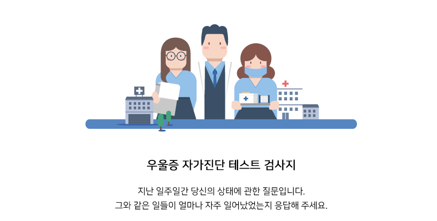 그렇다면 이러한 우울증 극복 방법으로 무엇이 있을까? 먼저 내가 겪고 있는 상태가 어느 정도인지 자가진단 테스트를 통해 확인을 해보고 점검을 해보셔야 합니다.