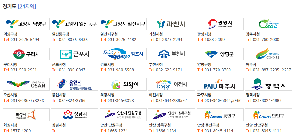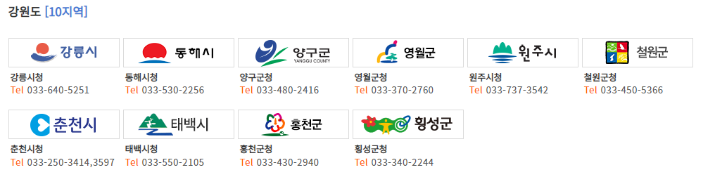 홈페이지에서 신청하는 방법으로는 메인화면에 '지역별 온라인 신청'을 클릭합니다. 현재 신청이 가능한 지역은 서울, 경기도, 경상남도, 전라남도, 전라북도, 강원도 등입니다.