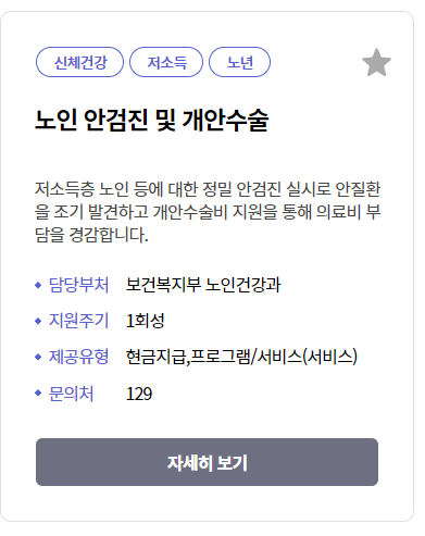 차상위계층 의료지원 혜택으로는 고위험 임산부 의료비 지원, 노인 실명예방 안 검진 및 개안 수술, 노인 인공무릎 관절 수술 지원 등이 있습니다.
