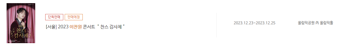 이번 찬스감사제 콘서트를 통해서 이찬원은 크리스마스와 연휴를 팬들과 함께 즐거운 시간을 보낼 예정인데요. 이찬원을 사랑하는 많은 팬분들이 함께 즐거운 공연이 될 것 같습니다.